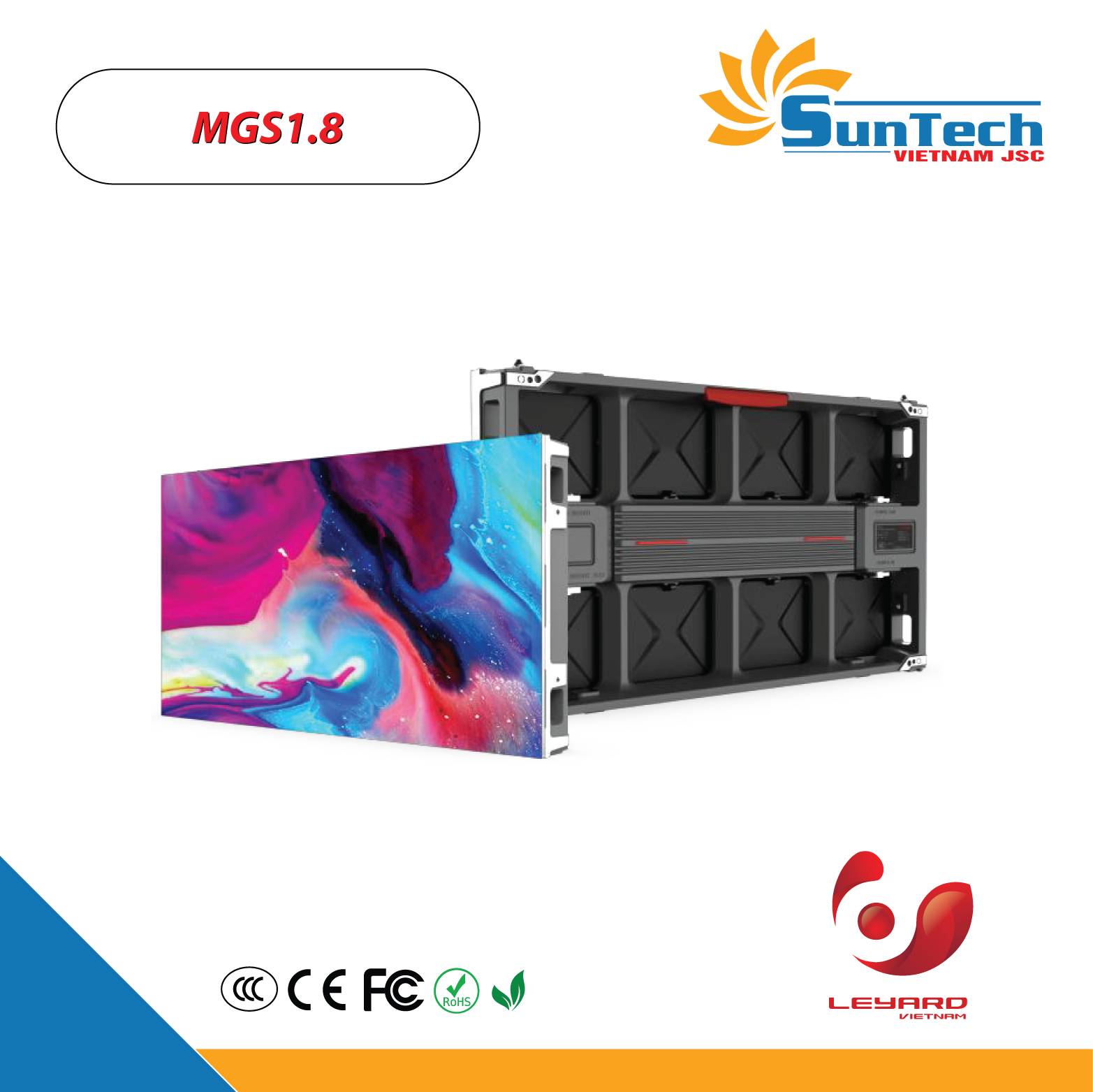 MGS1.8 có độ bền cao, phù hợp với nhiều ứng dụng khác nhau. Các tính năng nổi bật MGS1.8 bao gồm khung nhôm cứng cáp, hệ thống tản nhiệt hiệu quả, tiêu thụ điện năng thấp, đạt chuẩn chống nước và bụi IP65, công nghệ MicroLED với đóng gói flip-chip toàn diện. Hiệu suất hiển thị vượt xa mong đợi